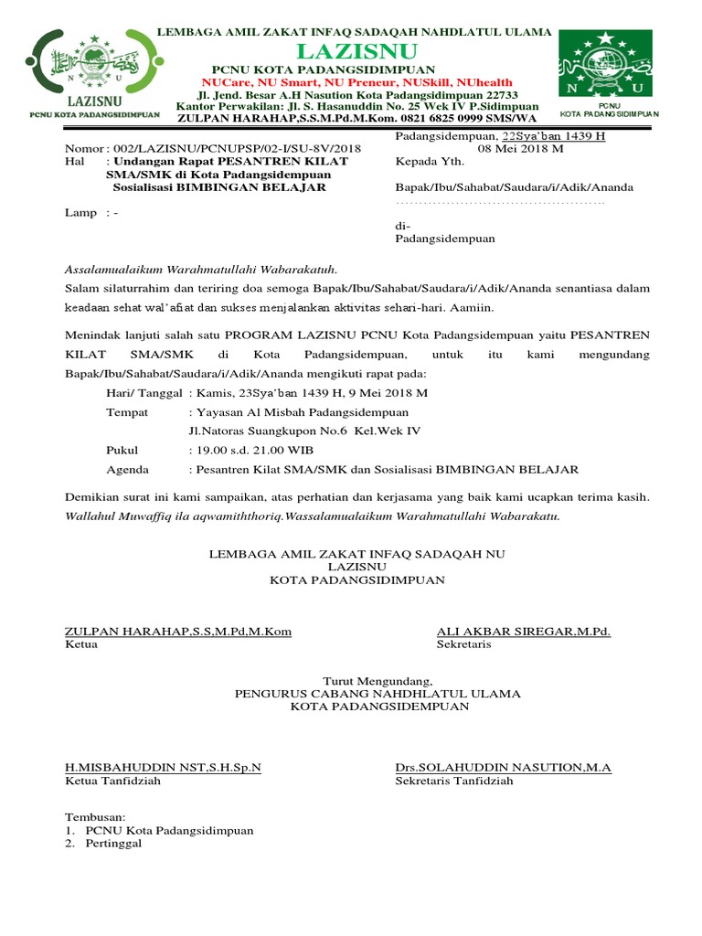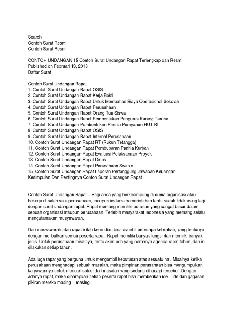 23 M Sulaeman Surat Resmi from img.dokumen.tips Di kesempatan kali ini dosenpintar.com akan membagikan artikel mengenai tentang contoh surat undangan yang meliputi. Undangan resmi ini contohnya adalah surat undangan rapat organisasi, undangan dari instansi pemerintah, atau undangan dari suatu perusahaan. Contoh surat undangan resmi rapat perusahaan. Untuk bagian pembuka, isi, dan. Rapat memang memiliki peranan yang sangat besar dalam sebuah organisasi. Smp 2 nurul iman jakarta pusat. Karena memang minat untuk menjadi pegawai negeri sipil masih tinggi. Nah berikut ini jatikom akan berikan contoh surat rapat yang baik dan benar.